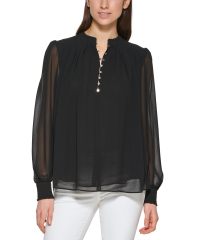 【女款】Long Sleeve Button Front Chiffon 上衣 13700145 Black