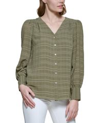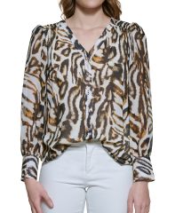【女款】Long Sleeve Printed Button Front 上衣 13800173 Caper/wheat