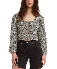 【女款】Tie-Front Floral-Print 上衣 13549932 Larger Melody Floral Caviar