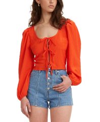 【女款】Tie-Front Floral-Print 上衣 13549932 Ruched Stripes Enamel Orange