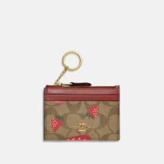 Coach 女款 Mini Skinny Id卡包 In Signature Canvas With Wild Strawberry Print CH527