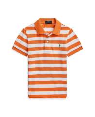 【男童款】幼童和小童 Striped Cotton Mesh 短袖Polo衫 15720703 Lifeboat Orange, White