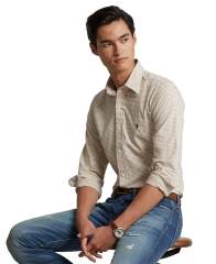 【男款】Gingham Stretch Poplin 经典版弹力衬衫 14402151 Vintage Khaki/White
