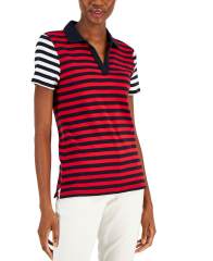 【女款】Colorblocked Striped Johnny Collar Polo衫 15454066 Bi Stripe- Scarlet/ Sky Captain