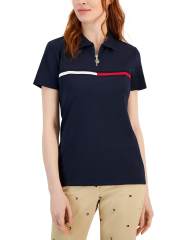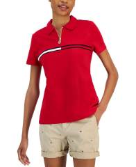 【女款】Quarter-Zip Signature-Stripe Polo衫 15833809 Scarlet
