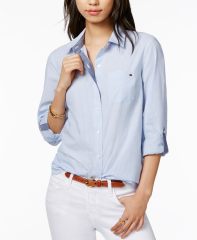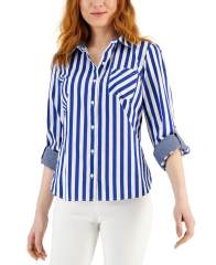 【女款】Striped Cotton Roll-Tab 衬衫 15454070 Bi Stripe- Marina Blue/ Bright White