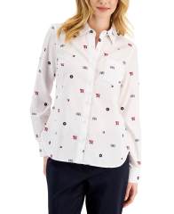 【女款】Cotton Easy Care Logo-Print Popover 衬衫 13889869 Bright White/Sky Captain