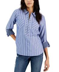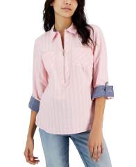 【女款】Striped Half-Zip Roll-Tab 衬衫 15200806 Chmbry/wht