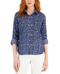 【女款】Cotton Roll-Tab 衬衫 15454069 Dune Ditsy- Marina Blue Multi