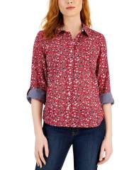 【女款】Cotton Roll-Tab 衬衫 15454069 Dune Ditsy- Scarlet Multi