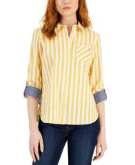 【女款】Striped Cotton Roll-Tab 衬衫 15454070 Bi Stripe- Deep Maize/ Bright White