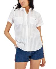 【女款】Cotton Woven Stripe Camp 衬衫 15767251 Brt White