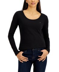 【女款】Scoop-Neck Long-Sleeve 上衣 12634760 Black