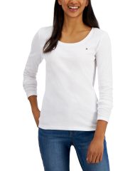 【女款】Scoop-Neck Long-Sleeve 上衣 12634760 Bright White