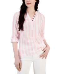 【女款】Cotton Texture-Striped Tunic 上衣 15514212 Bright White/ English Rose