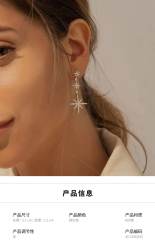 不对称蝴蝶耳环银白色0.5x2.4cm
