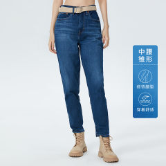 【女款】 女士蓝色中腰锥型梨形身材丹宁牛仔裤