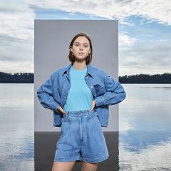 【女款】 冰酷系列女士春夏款天蓝色圆领印花短袖T恤潮