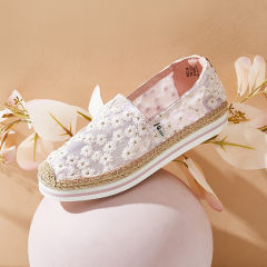 【女款】 小清新花瓣乐福鞋女镂空网纱透气春季款厚底一脚蹬懒人休闲女单鞋