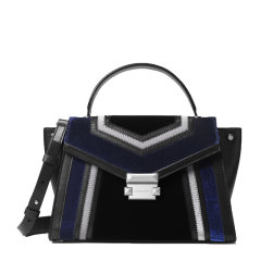 【女款】 QH Michael Kors 迈克·科尔斯 女士黑色拼蓝色天鹅绒皮革挎包 30F8SXIS2C-BLK-DK-ELBLU