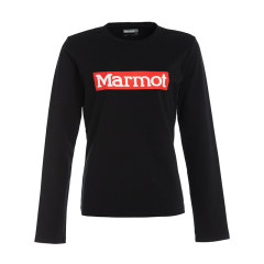 【女款】MARMOT 女款 T恤 长袖棉T 运动户外内搭休闲上衣 大红LOGO 44160 曜石黑