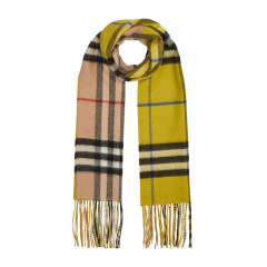 Burberry 巴宝莉 女士黄色格子羊绒围巾 8004548
