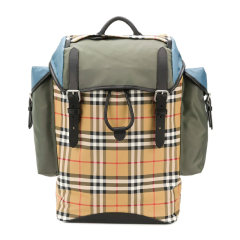 QH Burberry 巴宝莉 男士军绿色格纹双肩背包 8005407