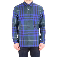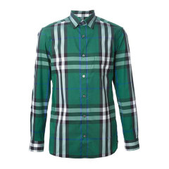 【男款】 Burberry 巴宝莉 男士绿色纯棉经典格纹长袖衬衫 3954493