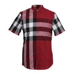 【男款】 Burberry 巴宝莉 男士红色格纹短袖衬衫 4004625