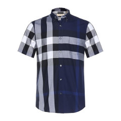 【男款】 Burberry 巴宝莉 男士深蓝色格纹棉质短袖衬衫 4004851