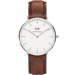 丹尼尔惠灵顿(Daniel Wellington)手表DW女表36mm银色边皮带超薄女士石英手表0610DW(DW00100055)