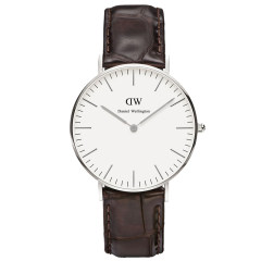 丹尼尔惠灵顿( Daniel Wellington)手表DW女表36mm白表盘银色边皮带超薄女士石英手表0608DW(DW00100053)