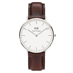 丹尼尔惠灵顿(Daniel Wellington)手表DW女表36mm银色边皮带超薄女士石英手表0611DW(DW00100056)