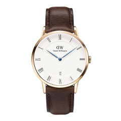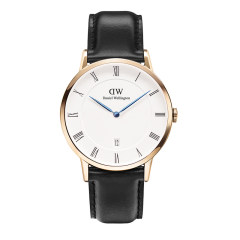 丹尼尔惠灵顿(Daniel Wellington)手表DW男表38mm金色边皮带男士石英手表带日历1103DW(DW00100086)
