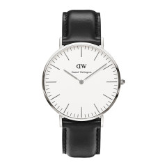 丹尼尔惠灵顿(Daniel Wellington)手表DW男表40mm表盘银色边皮带超薄男士石英手表0206DW(DW00100020)