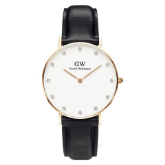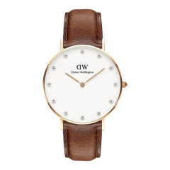 丹尼尔惠灵顿 (Daniel Wellington )手表DW女表34mm金色边皮带超薄女士石英手表带日历DW00100093