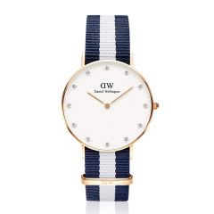 丹尼尔惠灵顿(Daniel Wellington)手表DW女表34mm表盘金色边尼龙带超薄女士石英表0952DW(DW00100077)