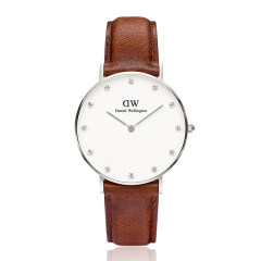 丹尼尔惠灵顿 (Daniel Wellington )手表DW女表34mm银色边皮带超薄女士石英手表带日历DW00100097