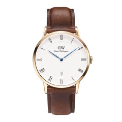 丹尼尔惠灵顿(Daniel Wellington)手表DW男表38mm金色边皮带超薄男士石英手表带日历1100DW(DW00100083)