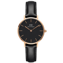 【女款】 丹尼尔惠灵顿 Daniel Wellington DW手表新款28mm金色边黑盘皮带 DW00100223