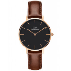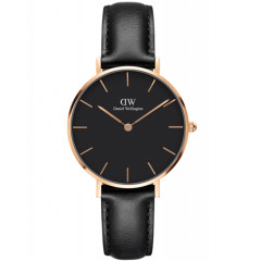 【女款】 丹尼尔惠灵顿 Daniel Wellington DW手表新款32mm金色边黑盘皮表带 DW00100168