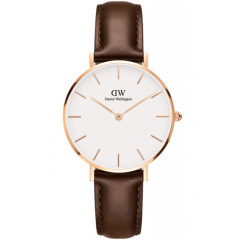 【女款】 丹尼尔惠灵顿 Daniel Wellington DW手表新款32mm金色边白盘皮表带 DW00100172