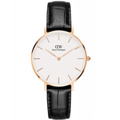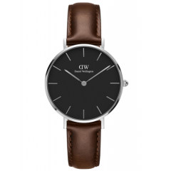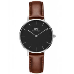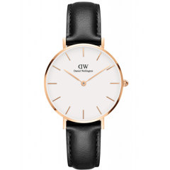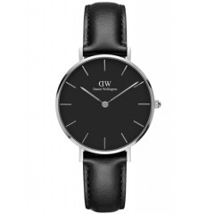 【女款】 丹尼尔惠灵顿 Daniel Wellington DW手表新款32mm银色边黑盘皮表带 DW00100177