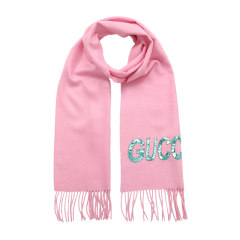 【女款】 GUCCI 女士粉色亮片logo流苏围巾 502362-3G334-5800