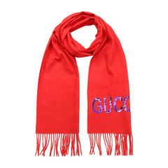 【女款】 GUCCI 古驰 女士红色亮片logo流苏围巾 502362-3G334-6500