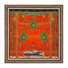 【女款】 GUCCI 古驰 女士橘色古罗马灵感印花丝巾 605746-3G001-1074