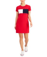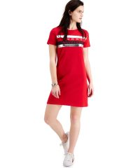 【女款】 Tommy Hilfiger Metalllic Logo T恤连衣裙 11942537Scarlet