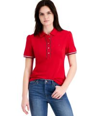【女款】 Tommy Hilfiger Cotton Puff-Sleeve Polo衫 11942567Scarlet
