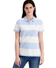 【女款】 Tommy Hilfiger Tommy Hilfiger 女士 标准款 条纹 Pique Polo 衫5791688Blue Sky/bright White