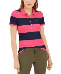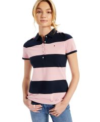 【女款】 Tommy Hilfiger Tommy Hilfiger 女士 标准款 条纹 Pique Polo 衫5791688Bridal Rose/sky Captain